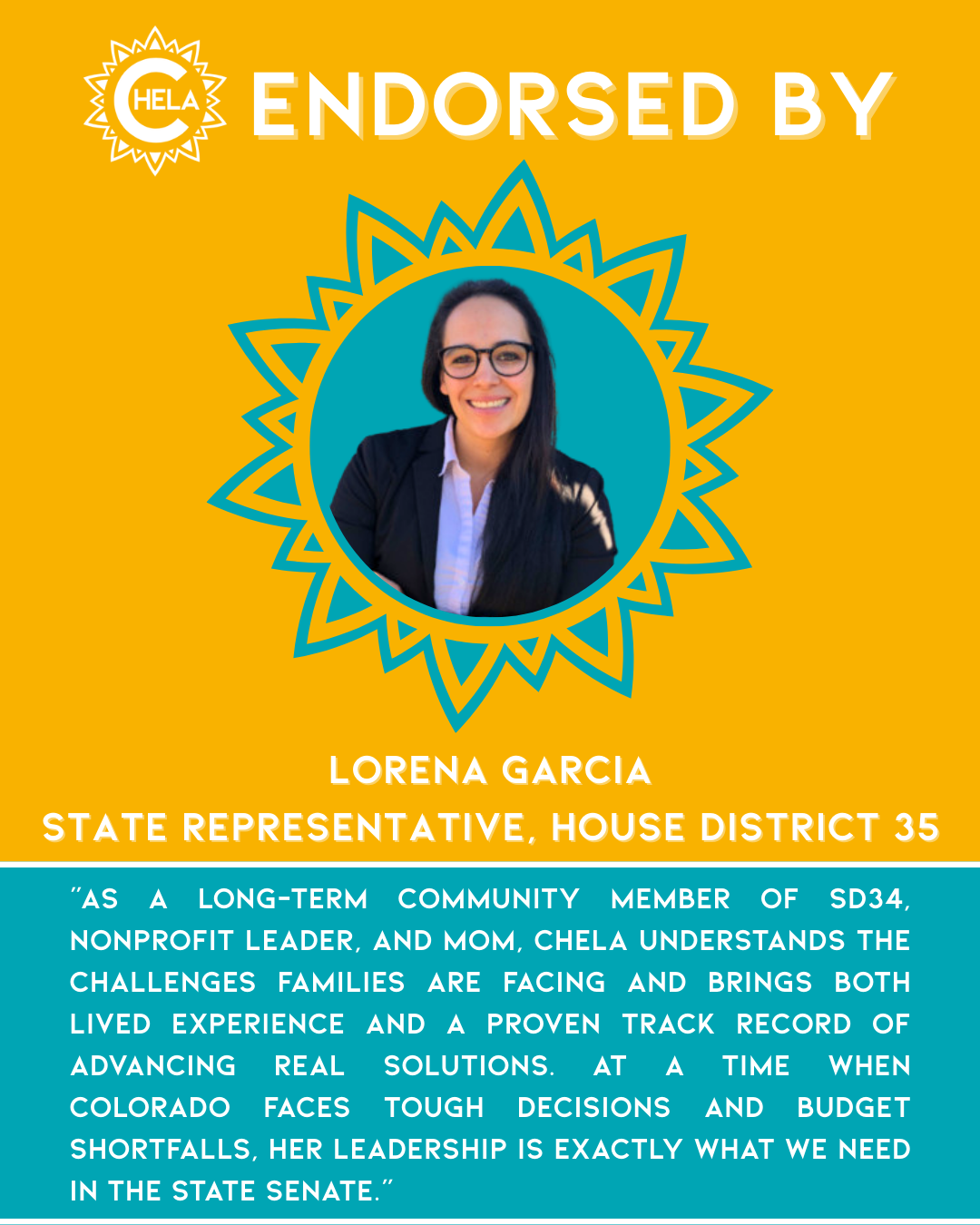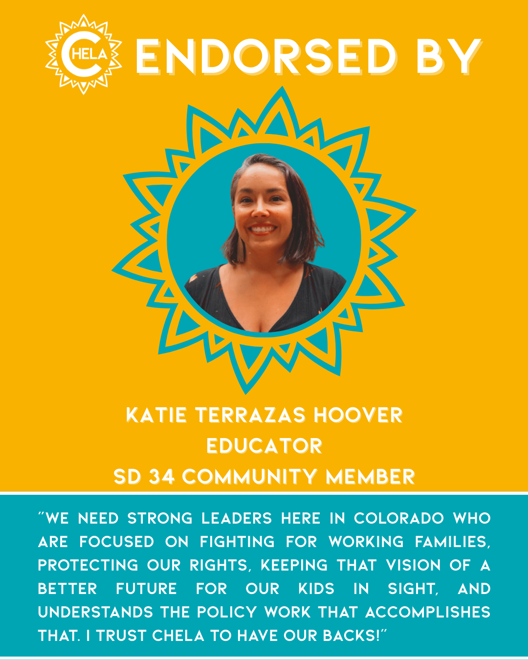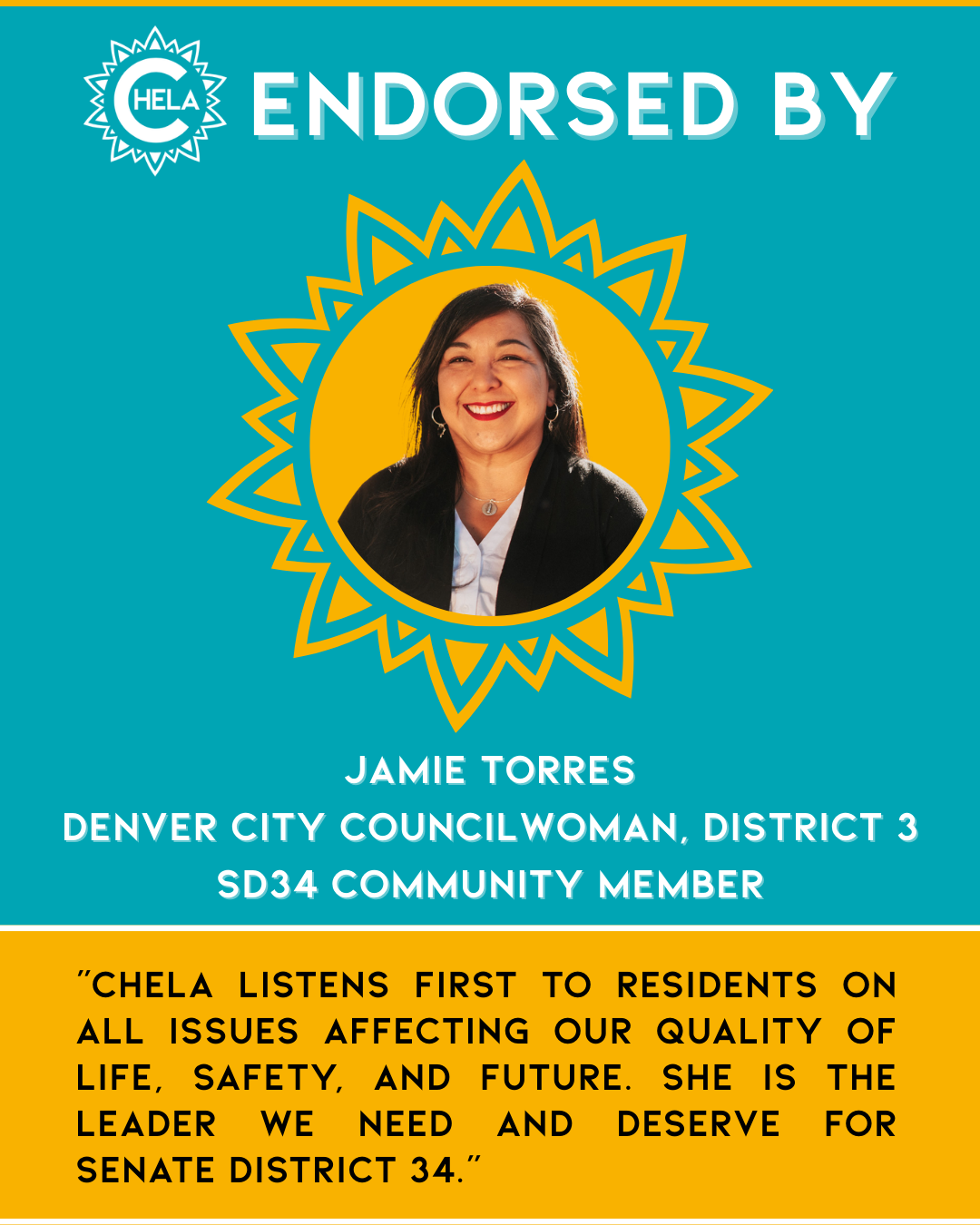 Chela is running for State Senate to fight for an affordable Colorado, our climate, and a government that works for its people. She’s ready to bring her values, experience, and vision to the Colorado State Capitol—and to help build a future where all families can thrive.